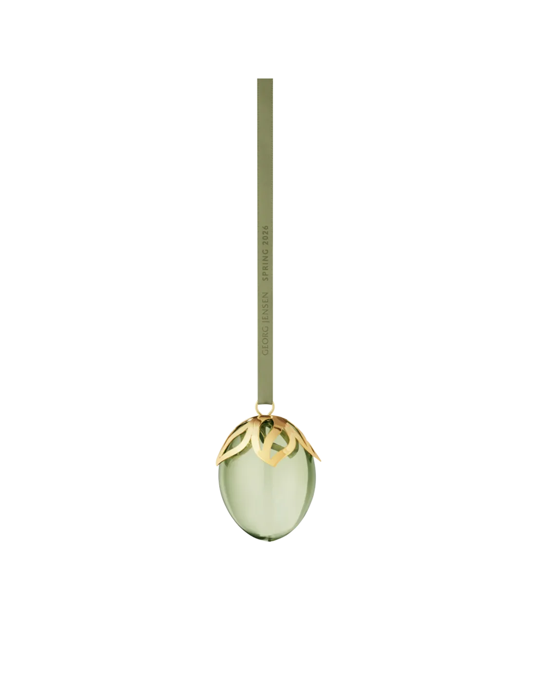 Dette æggeformede glasvedhæng er designet til at give et strejf af forår i hjemmet med sine smukke, guldbelagte detaljer, som er inspireret af årstidens blomster. Brug det som et charmerende motiv til grene og vinduer eller i en flot dekoration på bordet. Vedhænget er fra Georg Jensens årlige forårskollektion, som er en hyldest til årstidens blomster, designet til at indfange glæden i foråret, der vender tilbage.
