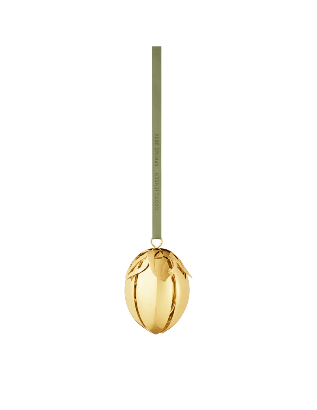 Dette guldbelagte vedhæng er designet til at give et strejf af forår i hjemmet med sine smukke detaljer, som er inspireret af årstidens blomster. Brug det som et charmerende motiv til grene og vinduer eller i en flot dekoration på bordet. Vedhænget er fra Georg Jensens årlige forårskollektion, som er en hyldest til årstidens blomster, designet til at indfange glæden i foråret, der vender tilbage.