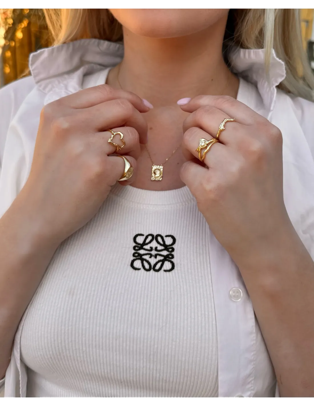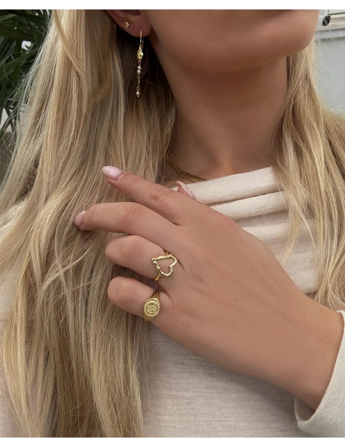 Shelly Ring er en moderne signetring med et detaljeret mønster, inspireret af fossile skaller og havets skjulte former. Det spiralformede relief i ringens centrum skaber et spændende spil mellem det matte og det blanke, og vækker associationer til strandfund og gamle tidevandsaflejringer.