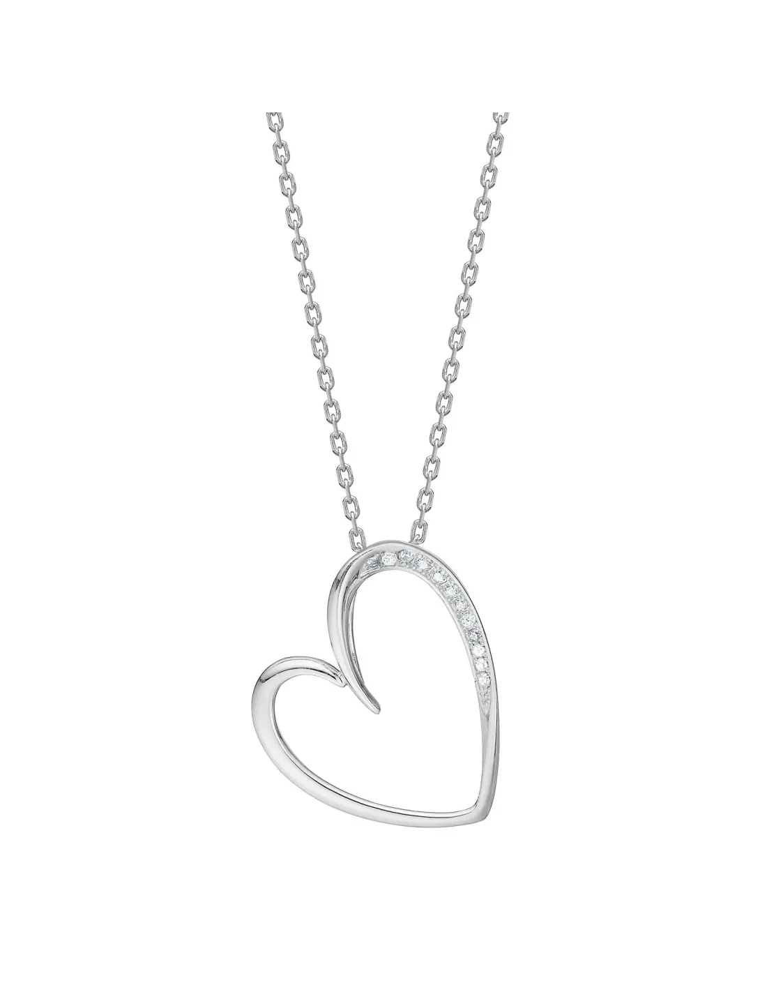 JOANLINOR | Rhod. sølvvedhæng hjerte m/cz inkl. kæde - RiveraNor