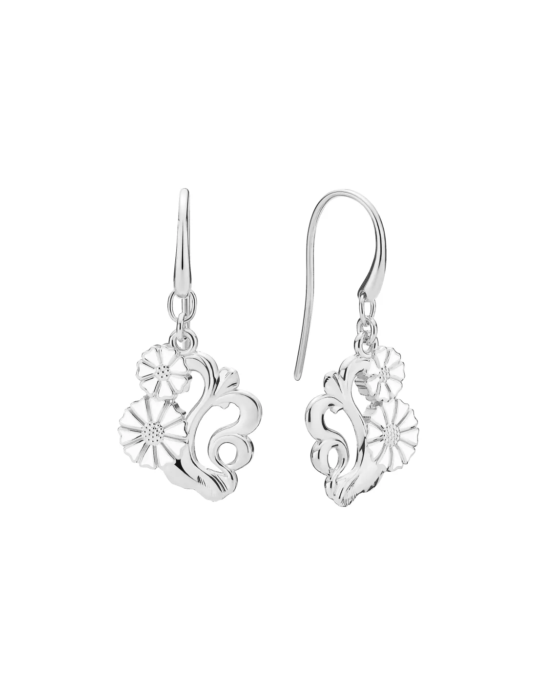 Lund Copenhagen | Marguerit ørehænger filigran 1x7,5mm + 1x5mm hvid emajle
