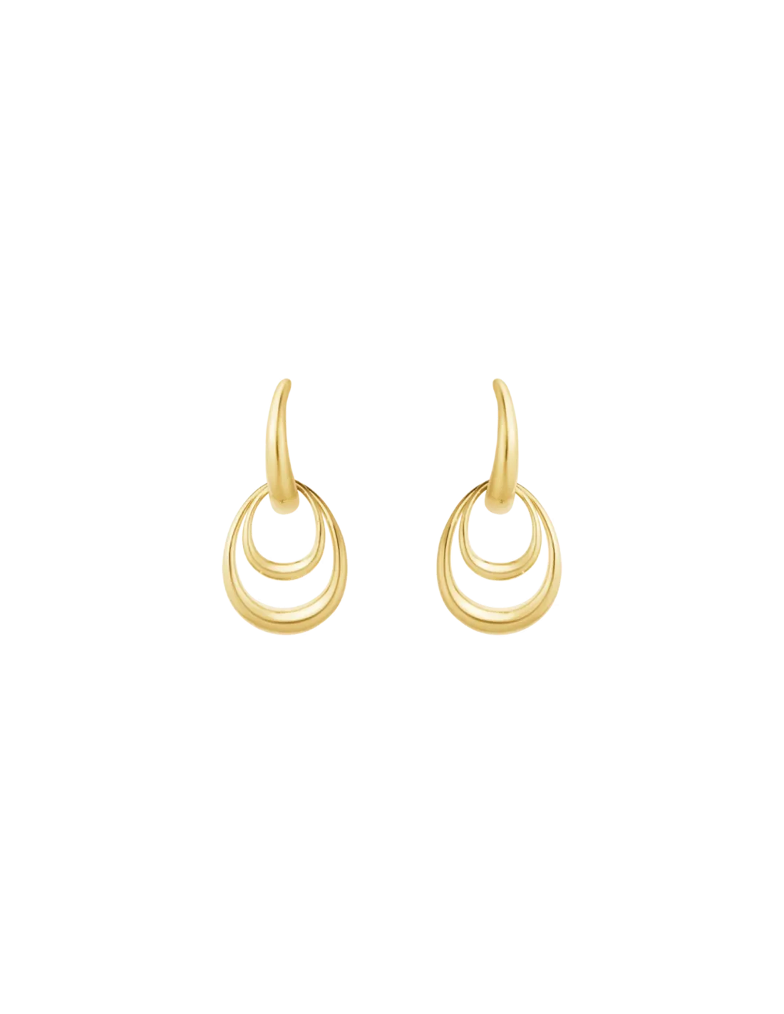 Disse elegante øreringe i 18 karat guld er designet til at blive båret på forskellige måder. I øreringene hænger to aftagelige ringe med Offspring kollektionens organiske signaturform, som kan bruges lag-på-lag eller hver for sig. Det unikke design giver op til fire forskellige kombinationsmuligheder for et personligt udtryk.