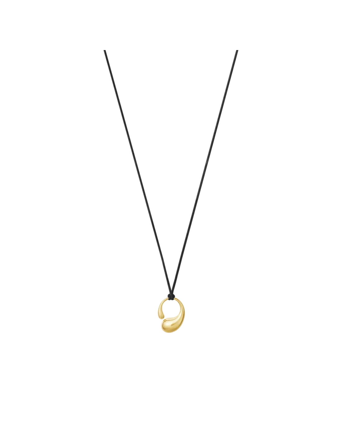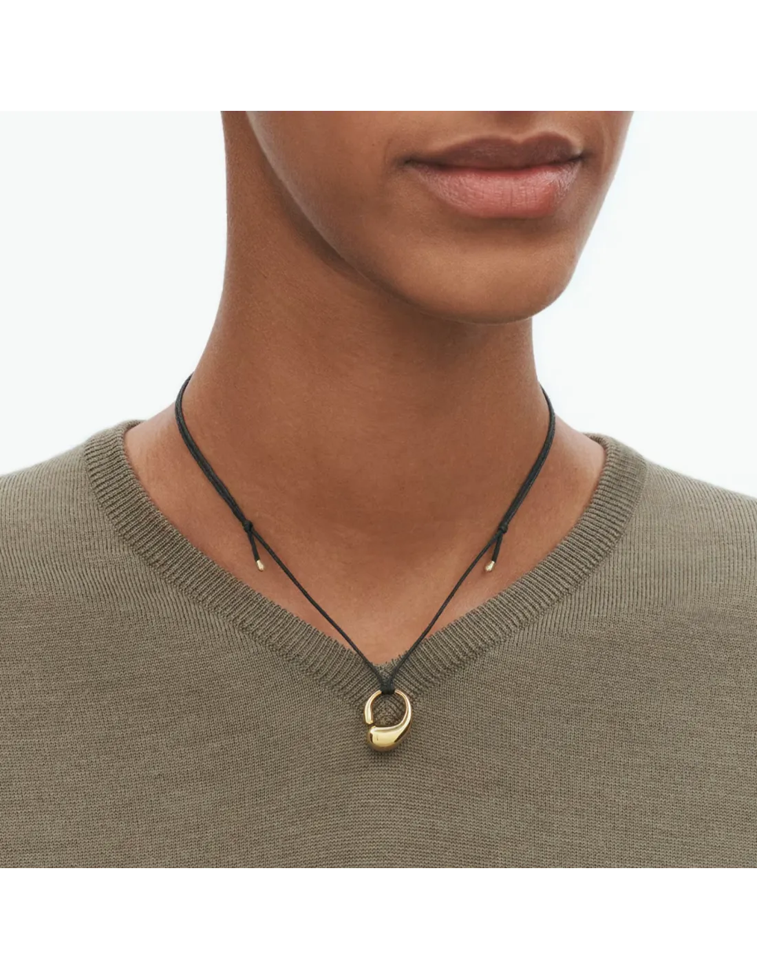 De bløde, organiske linjer i Jacqueline Rabuns Mercy ring bliver fortolket i dette vedhæng af 18 karat guld. Vedhænget bæres i en voksbehandlet bomuldssnor med ender af guld for et elegant udtryk. Mercy kollektionen blev introduceret i 2019 og rummer en dyb symbolik. Serien henter inspiration i timeglassets facon til de skulpturelle smykker, som bliver et billede på tiden, der går.