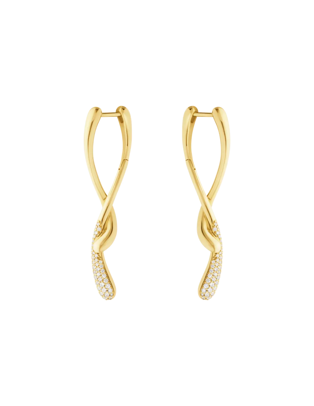 Den snoede form er et definerende element i Jacqueline Rabuns Mercy kollektion, inspireret af timeglassets facon, som symboliserer tidens gang og livets veje. Disse øreringe i 18 karat guld, besat med brillantslebne diamanter, fortolker den snoede form i et elegant og skulpturelt design.