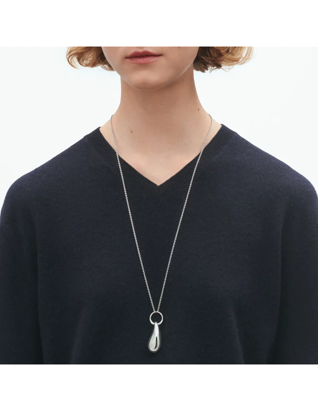 Dette lange vedhæng bæres i en let kæde af sterlingsølv og har de dråbeformede linjer, der kendetegner Jacqueline Rabuns Reflect kollektion. Designet hænger i en ring af sølv, som tilføjer en ekstra dimension til smykket. Reflect kollektionen blev lanceret i 2022 og bygger på Rabuns nyfortolkning af klassiske kæder gennem smykker med skulpturelle led og organiske former. Resultatet er en tidløs serie, der hylder individualiteten og det personlige udtryk.