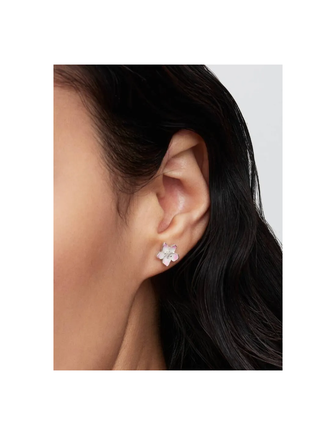 En blomstrende skønhed. Vores ørestikker med kirsebærblomst i sterlingsølv er dekoreret med håndmalet emalje med et strejf af pink – en hyldest til din fornyelse og vækst.