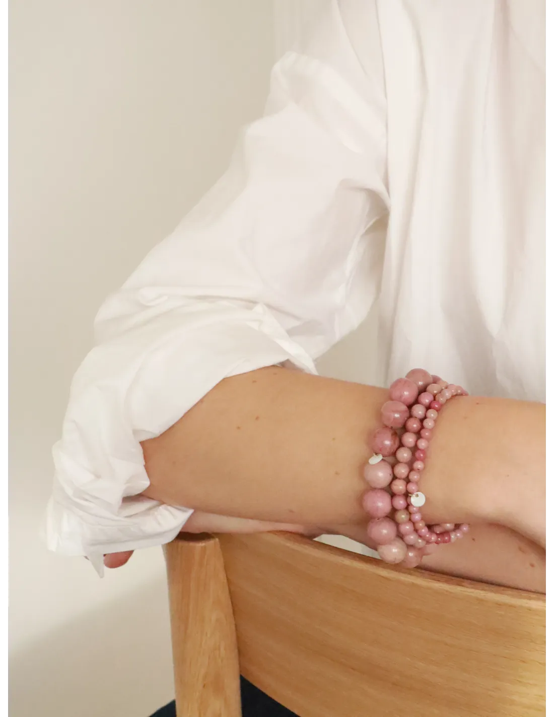 Essential Rhodonit Stretch Armbåndet er skabt med det formål at støtte dig i at finde balance, indre ro og følelsesmæssig harmoni. Rhodonit forbindes med ligevægt og menes at hjælpe med at skabe stabilitet i både hjerte og sind.