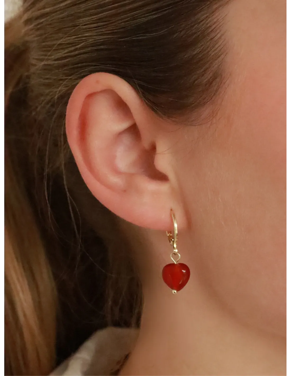 Alma Rød Jade Hjerte Øreringene er skabt med det formål at hjælpe dig til at finde din styrke, passion og øge dit held.