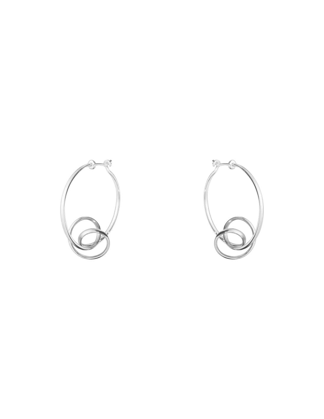 Disse elegante øreringe er et design, som stammer fra 1971, hvor de blev skabt af Vivianna Torun Bülow-Hübe. Den anerkendte svenske sølvsmed fandt inspiration i naturens subtile skønhed, og hendes Forget-Me-Knot kollektion er kendetegnet ved bløde sølvsnoninger, som minder om en plantes fine, snoede slyngtråde.