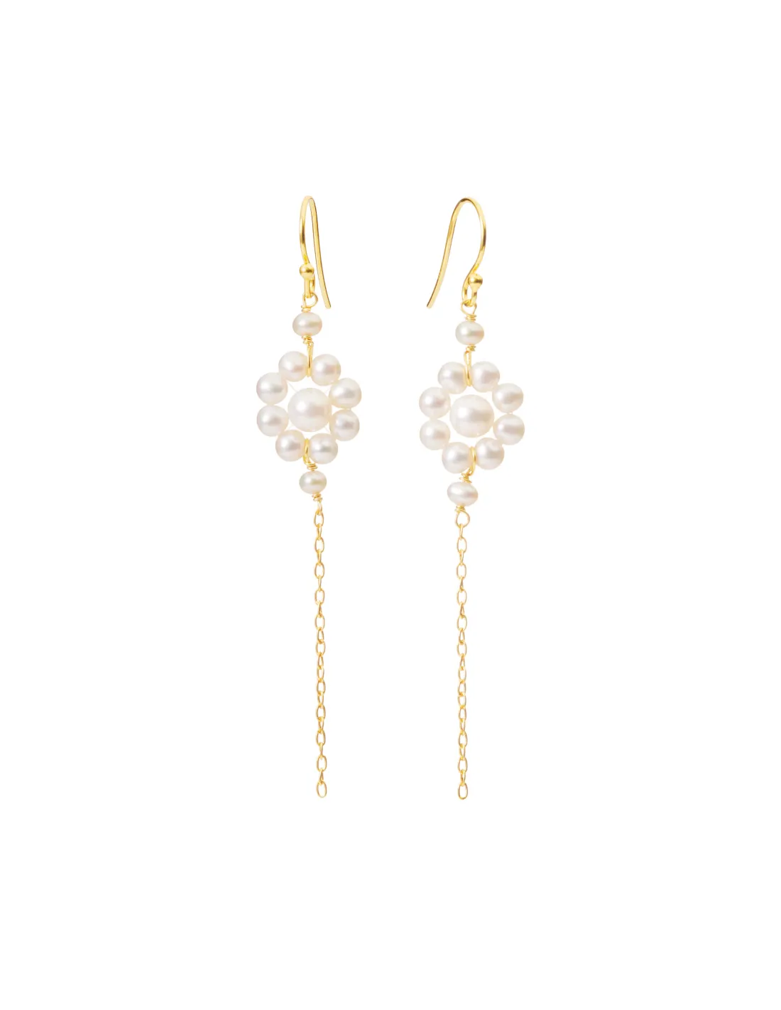 SUSANNE FRIIS BJØRNER | Ørering (bøjle), sølv, forgyldt hvid ferskvandsperleblomst