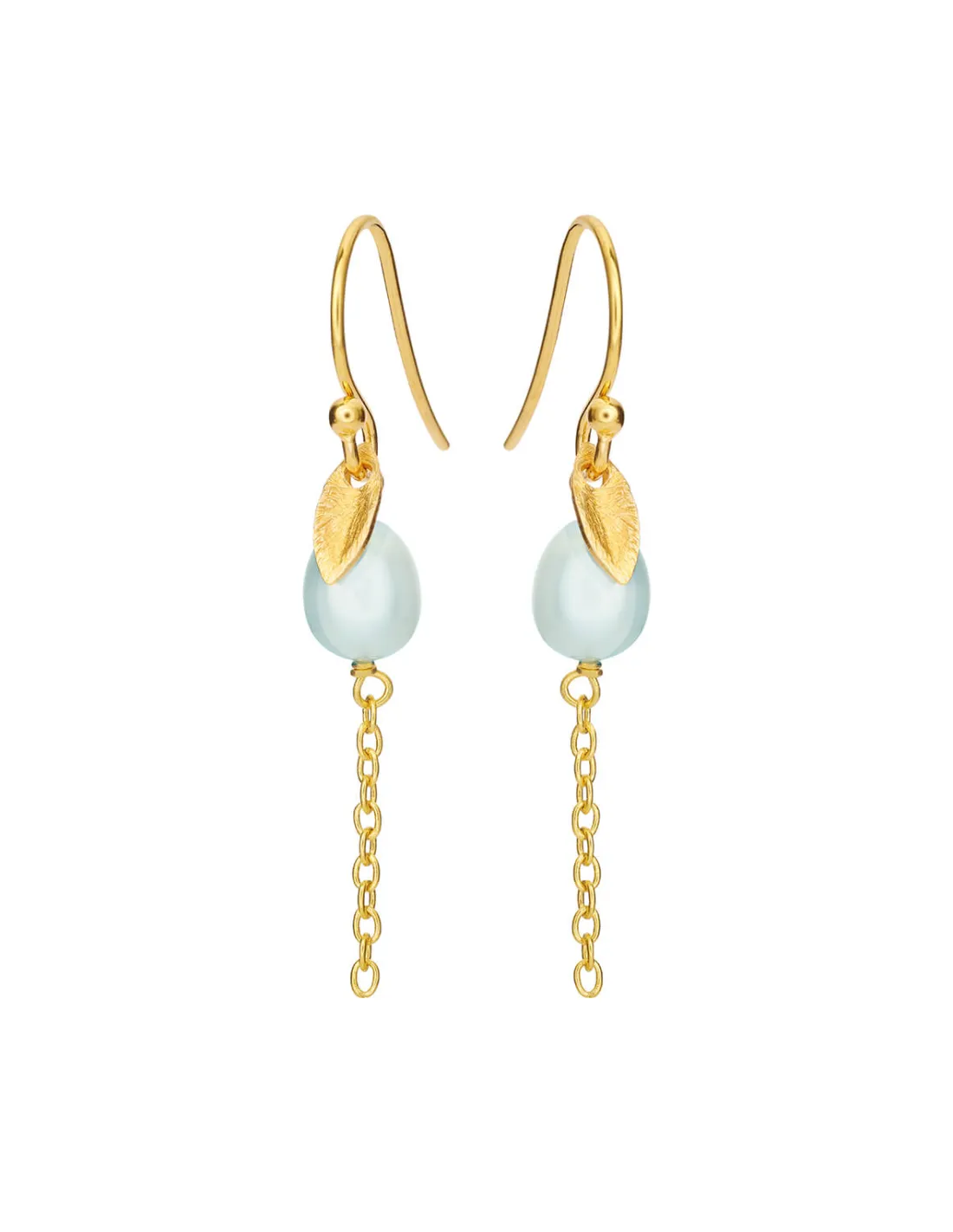 SUSANNE FRIIS BJØRNER | Ørering (bøjle), forgyldt sølv, lille blad og turkis ferskvandsperle 5-6 mm