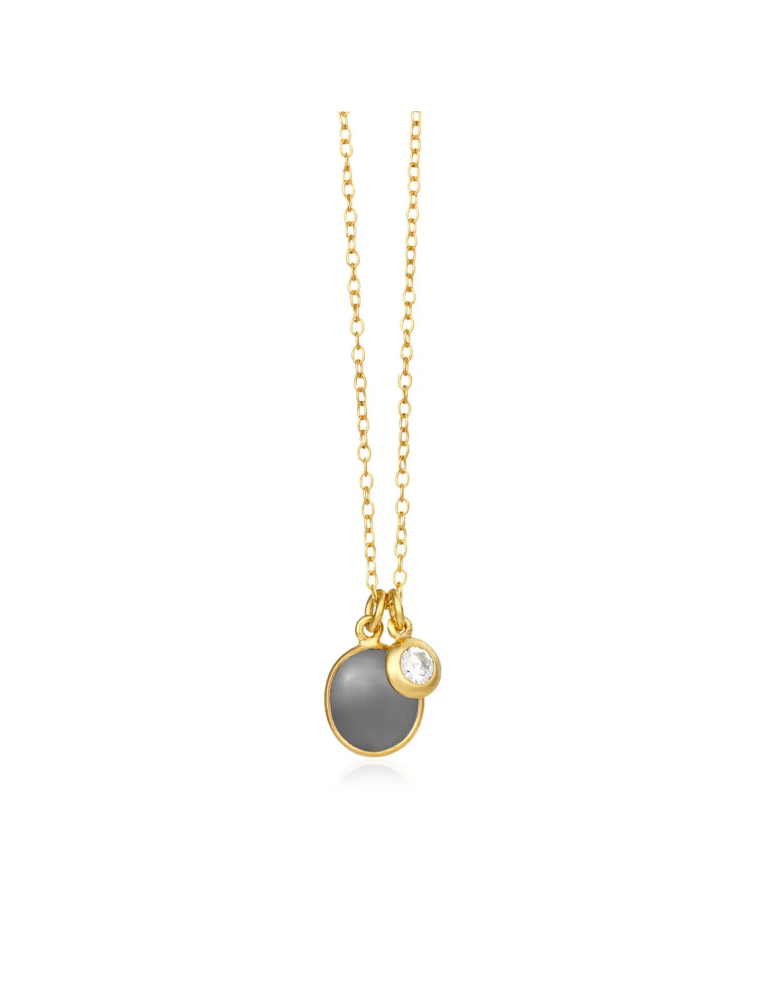 Susanne Friis Bjørner | Halskæde anker 45 cm, forgyldt sølv, zirkon i fatning, 10x12 mm oval cabochon grå agat