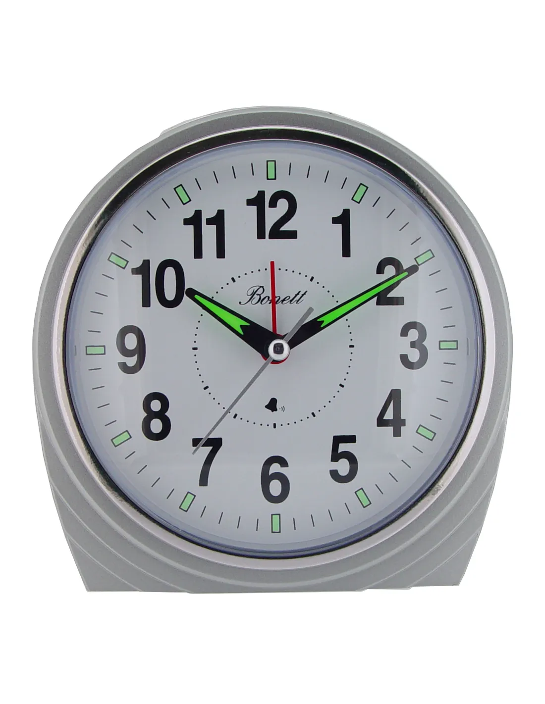 Forside BONETT | Vækkeur sort med hvide tal BONETT 2111-7 249,00 kr. H:9cm B:10,5cm Glidende sek. viser, Lys, BIB Læg i indkøbskurv