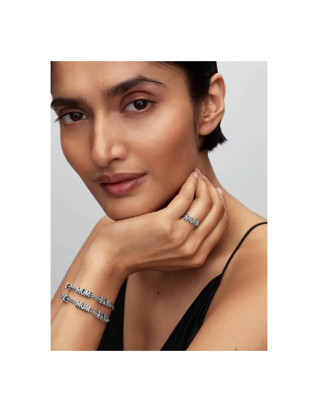 Sig det til mor. Bogstaveligt talt. Hyld moderskabet i alle dets former med vores dristige ordcharm. Hvert bogstav er fremstillet i sterlingsølv og indfattet med en sten i klar kubisk zirkonia, der giver et ekstra strejf af glans.