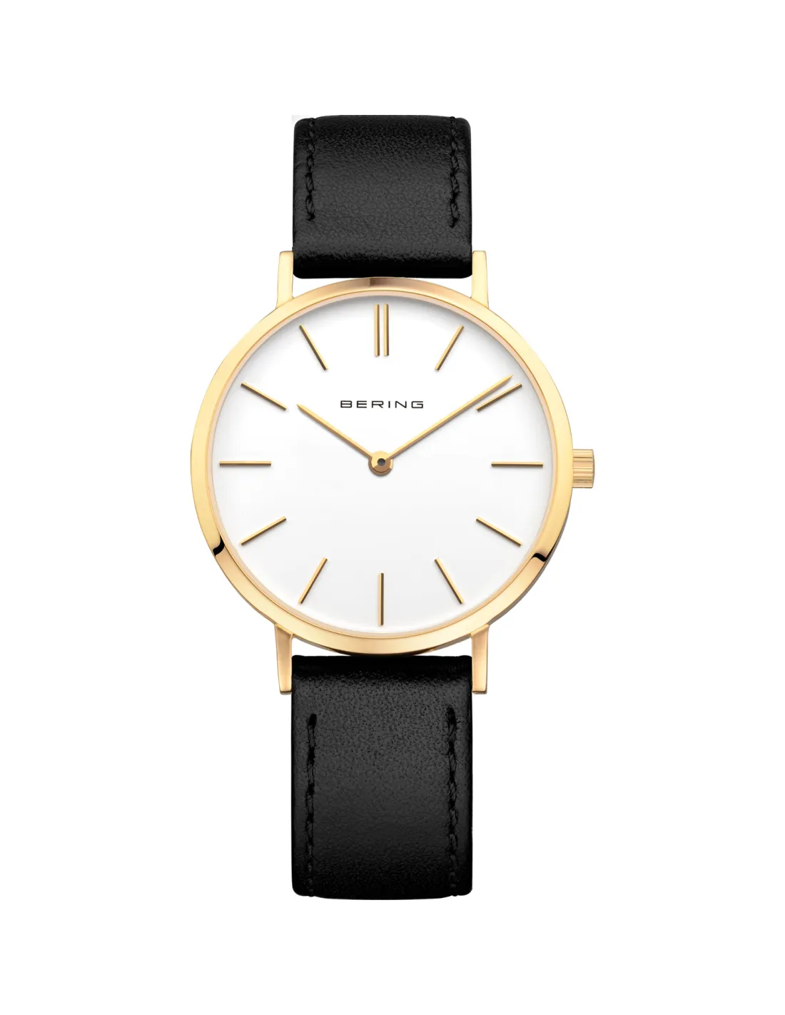 Forside BERING | Classic | poleret guld | 19126-710 BERING 19126-710 1.499,00 kr. BERING bruger ren og høj kvalitets rustfrit stål (316L), der også anvendes i medicinsk teknologi. Det kølige udseende af rustfrit stål og den puristiske og klare linje af BERING ures design supplerer hinanden perfekt og garantere et blændende udseende. Læg i indkøbskurv