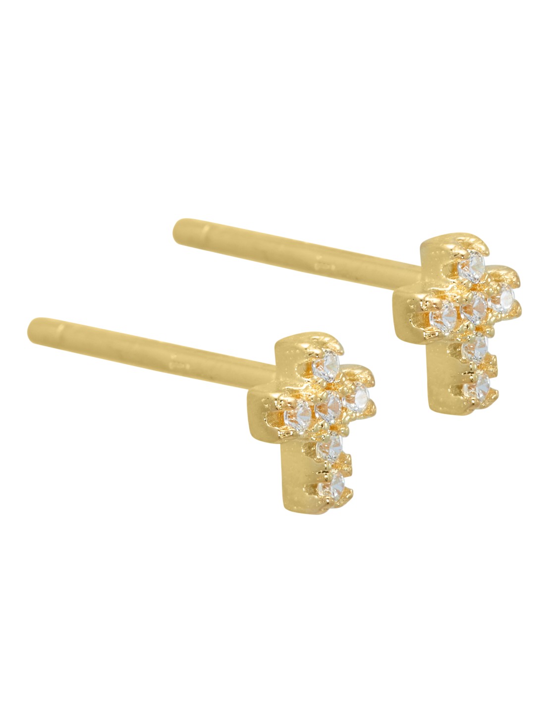 Ørestikker i forgyldt Sterling sølv med Zirkoniabelagt kors. Alle vores forgyldte styles er belagt med 14 karat guld.