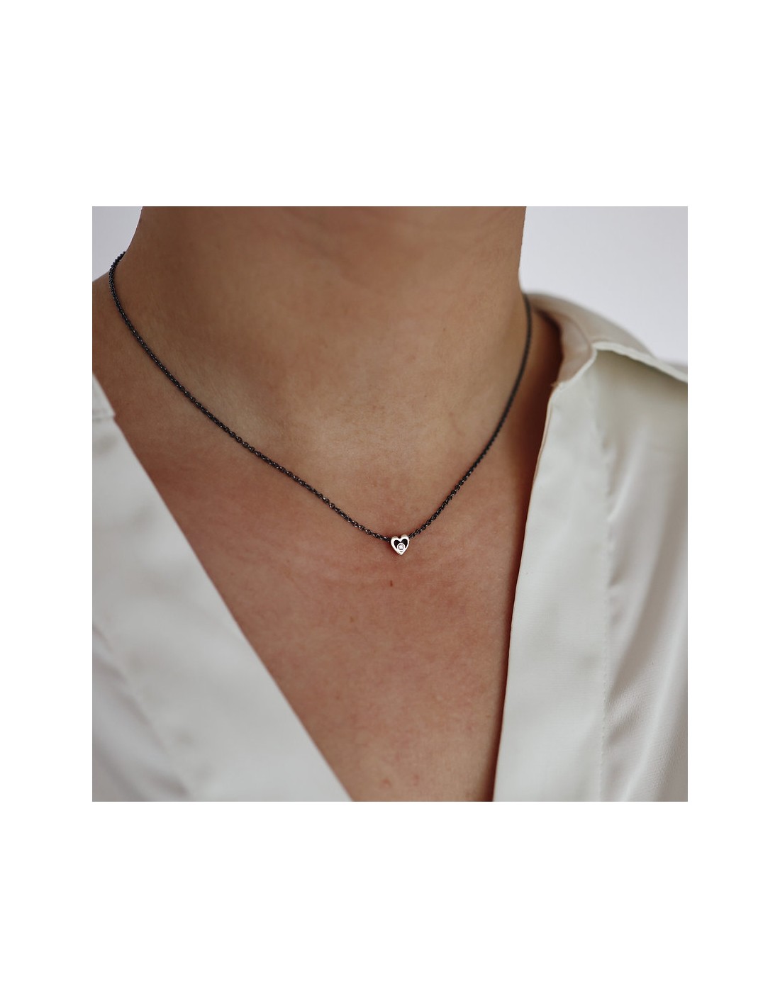 Open Your Heart vedhæng lavet i 14 kt. guld med en 0,02 ct. TW / VS diamant. Hjertet sidder på en oxyderet sølvhalskæde.