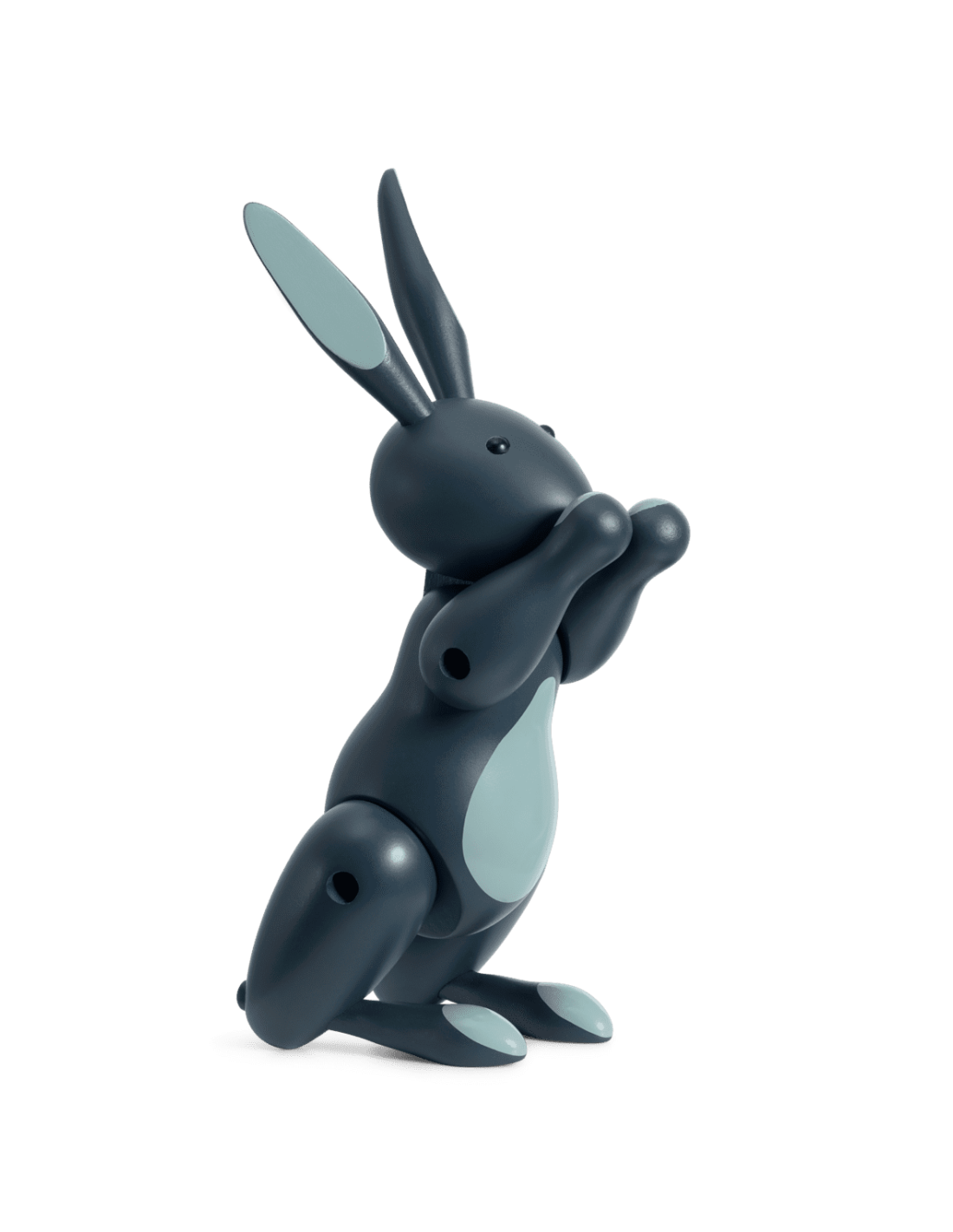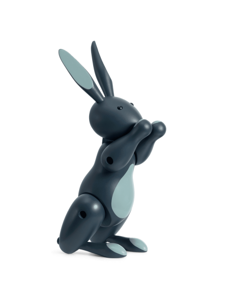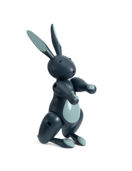 Kay Bojesen skabte sin kendte Kanin i 1957 – og det energiske design markerer på mange måder noget særligt i hans ikoniske designcirkus. Kaninen nåede at blive den sidste figur eftersom Bojesen døde året efter og satte dermed punktum for et af de mest originale universer i dansk designhistorie. Den Røde Kanin med gul mave og poter er kendt blandt samlere som den originale malede Kanin, som med glossy farveskær får endnu mere vitalitet i designet. Den Røde Kanin får følgeskab af en Blå Kanin i moderne midnats blå toner i mat bemaling.