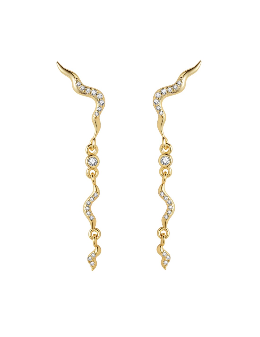 Vores smukke Venus Earrings er en større ørering med unikke detaljer. Øreringen er en lidt længere ørering og snor sig samtidig smukt op ad øreflippen, hvilket skaber et fortryllende look. Venus er fyldt med klare kubiske zirkoner i hvert vedhæng og har én enkelt i midten også. Øreringen er en del af vores Stargazing kollektion, som er inspireret af nattehimlens mange funklende stjerner.