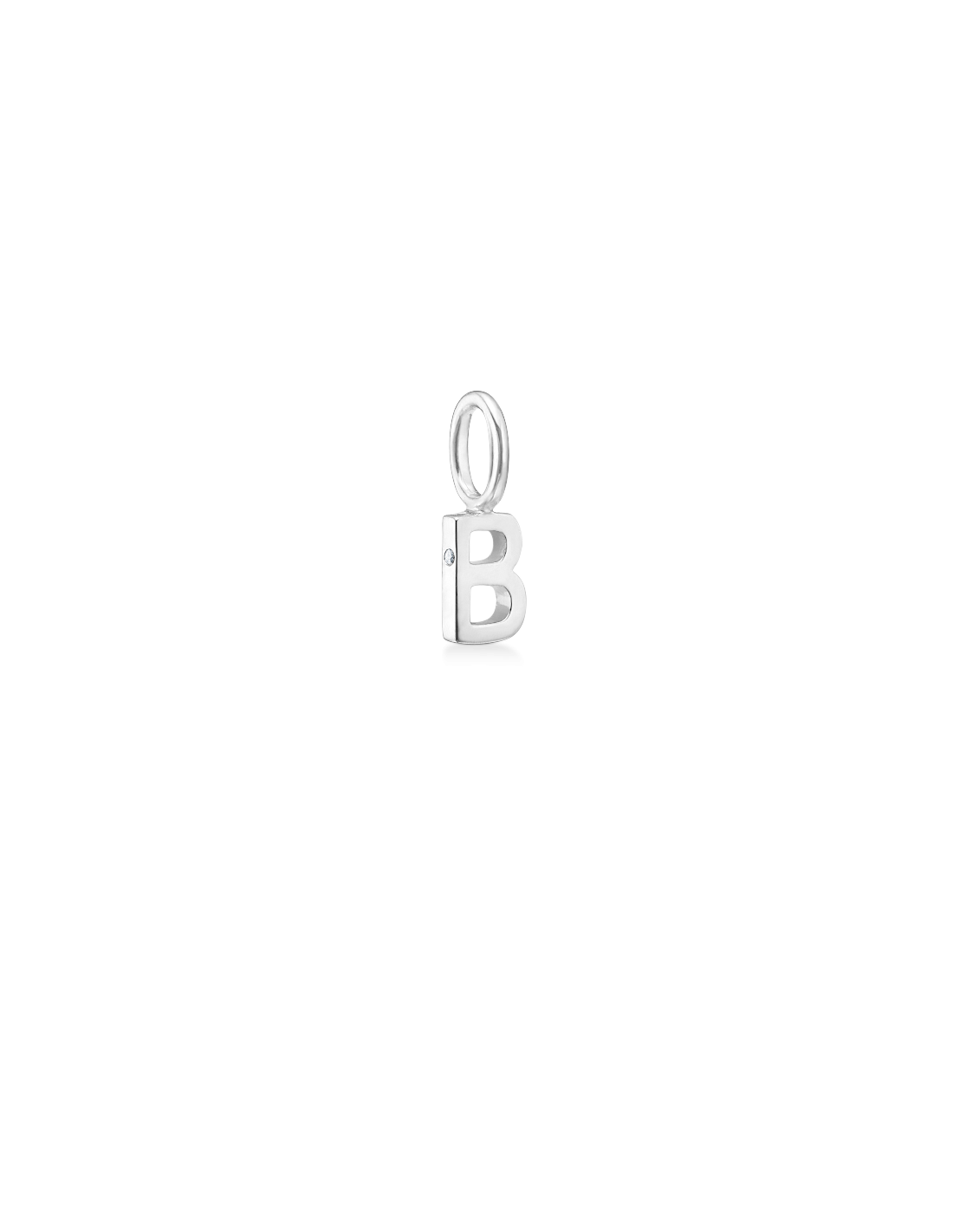 Solidt guld-vedhæng med bogstavet B. Et lille, helstøbt vedhæng, hvor formen også er funktionen. Lad bogstavet være en lille hemmelighed. Et symbol, som kun de indviede kender betydningen af. 18kt hvidguld. Sat med en lille Ro signatur-diamant. Brill.0.003 ct. TW.VS. Vedhænget er ca. 13 mm med øsken. Fås også i 18kt rødguld.