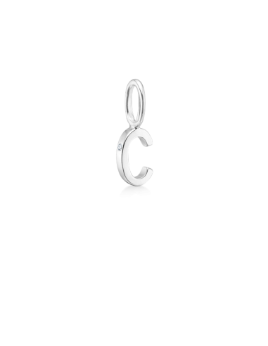 Solidt guld-vedhæng med bogstavet c. Et lille, helstøbt vedhæng, hvor formen også er funktionen. Lad bogstavet være en lille hemmelighed. Et symbol, som kun de indviede kender betydningen af. 18kt hvidguld. Sat med en lille Ro signatur-diamant. Brill.0.003 ct. TW.VS. Vedhænget er ca. 13 mm med øsken. Fås også i 18kt rødguld.