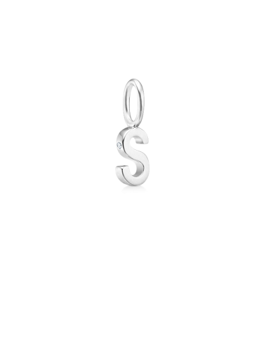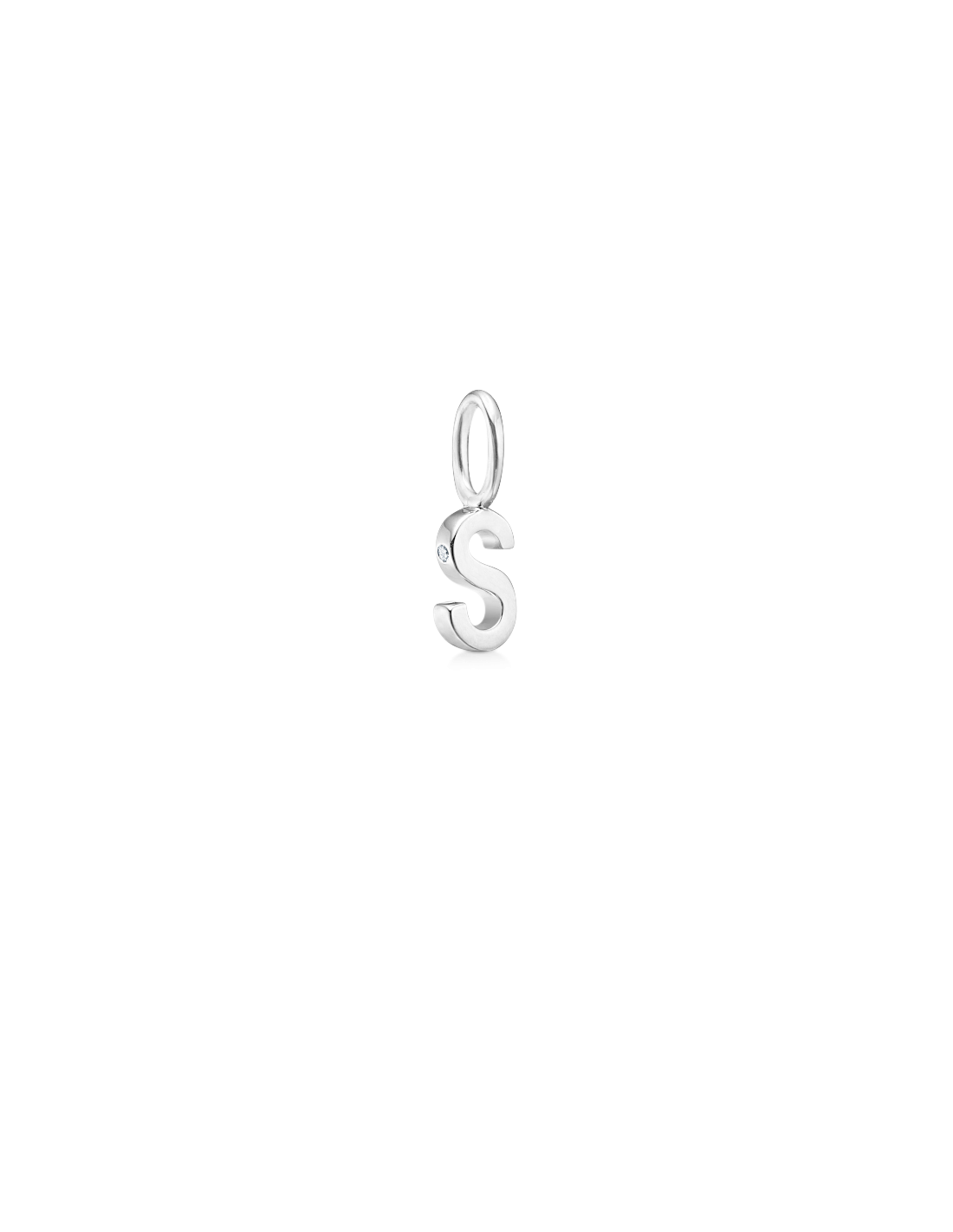 Solidt guld-vedhæng med bogstavet S. Et lille, helstøbt vedhæng, hvor formen også er funktionen. Lad bogstavet være en lille hemmelighed. Et symbol, som kun de indviede kender betydningen af. 18kt hvidguld. Sat med en lille Ro signatur-diamant. Brill.0.003 ct. TW.VS. Vedhænget er ca. 13 mm med øsken. Fås også i 18kt rødguld.