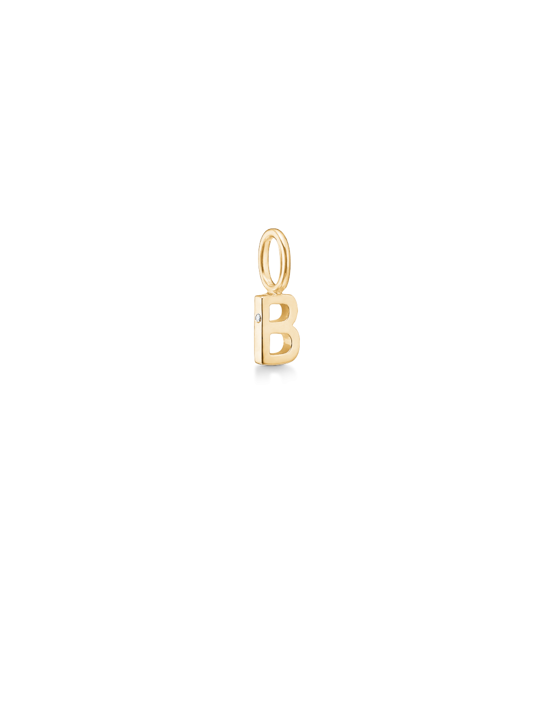 Enkelt B bogstav vedhæng i rødguld med Ro signatur-diamant.