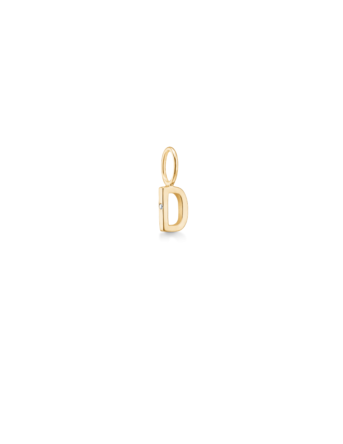 Solidt guld-vedhæng med bogstavet D. Et lille, helstøbt vedhæng, hvor formen også er funktionen.Lad bogstavet være en lille hemmelighed. Et symbol, som kun de indviede kender betydningen af.