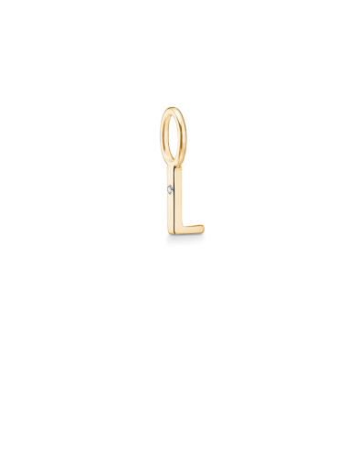 Solidt guld-vedhæng med bogstavet L. Et lille, helstøbt vedhæng, hvor formen også er funktionen.