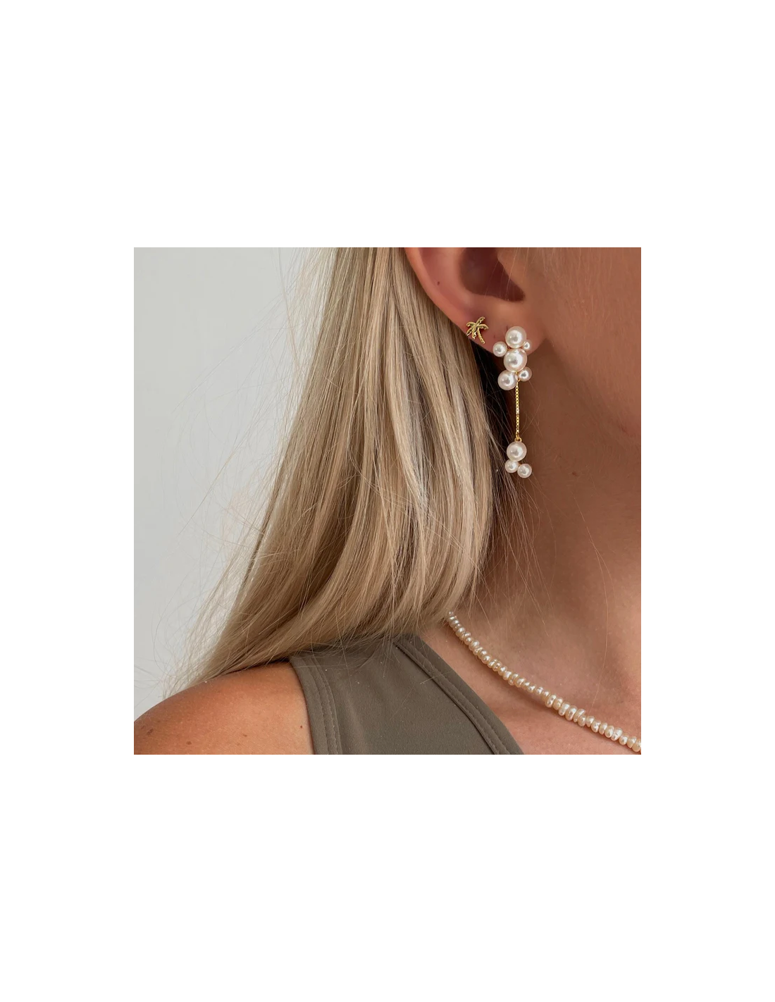 Vores Meha Earrings er en længere øring med smukke klaser af perler. Øreringen er elegant og klassisk og kan nemt bruges til både hverdag og fest, da den både kan styles op og ned. Meha Earrings er en del af vores Cloud Collection, som er inspireret af de hvide, puffede og eventyrlige skyer på himlen.
