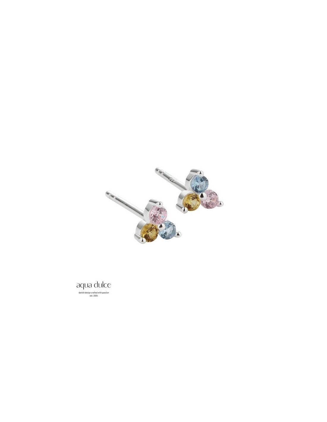 Ørestikker i sterling sølv med 3 små farvede zirkonia i blå, gul og rosa.