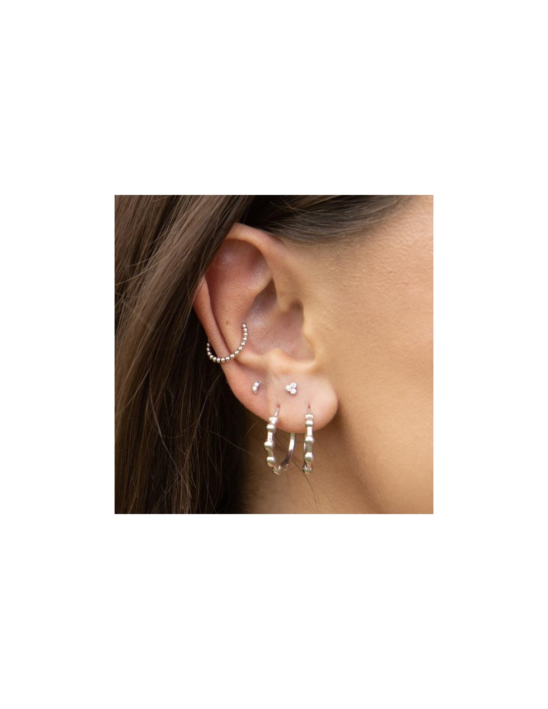 Flot labret i rhodineret sølv med zirkonia i en enkel og feminin udgave med tre små kugler.