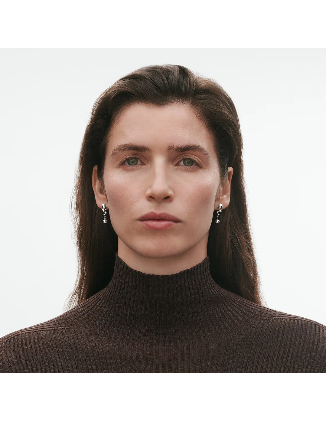Disse fine øreringe er formet af en elegant klynge af perler i sterlingsølv, som risler ned ad øreflippen. Som en diskret hilsen til Georg Jensens designarv er formen inspireret af sølvsmedens tidligste sølvhåndværk og de frugtmotiver, der prydede hans design.