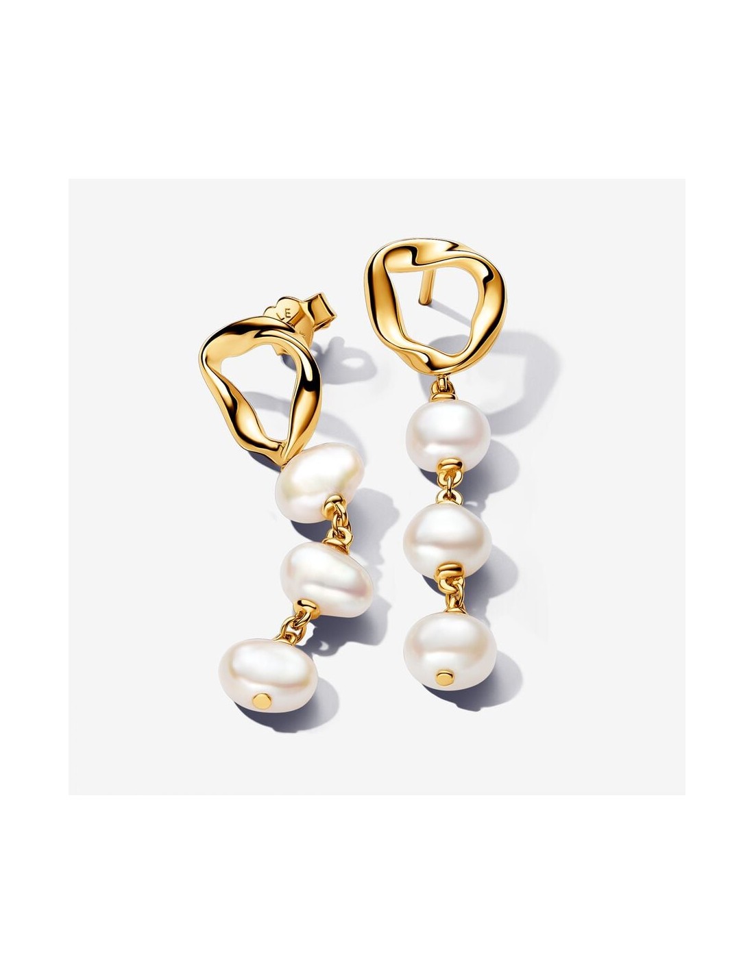 Pandora | Drop-øreringe med organisk formede cirkler og barok-behandlede ferskvandskulturperler