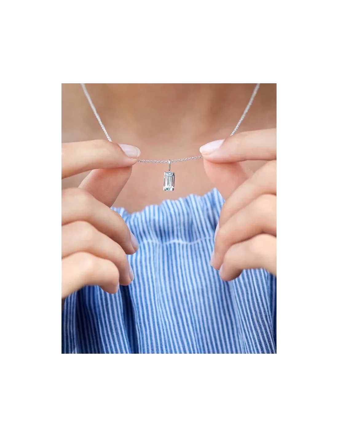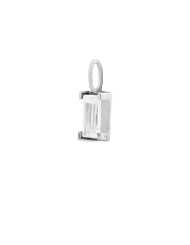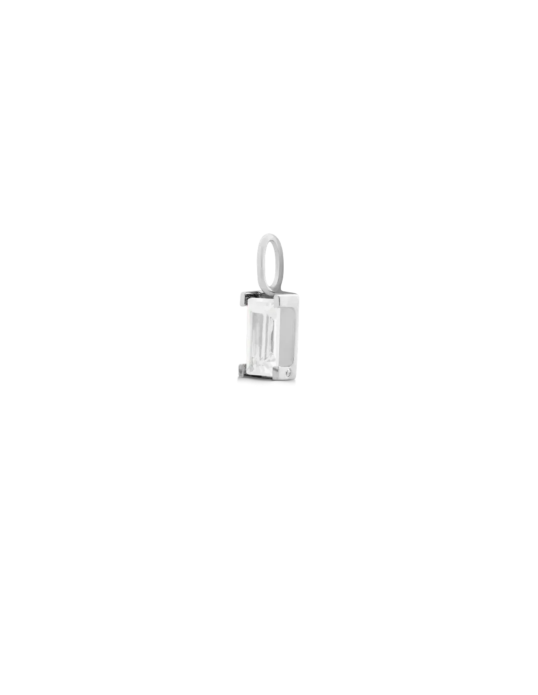 Nord White-vedhænget er fremstillet i 18kt hvidguld. Sat med denne fine hvide 0,85ct baguette-slebne topas samt vores Ro signatur-diamant. Brill.0,003ct TW.VS. Vedhænget måler 9 x 5 mm uden øsken.