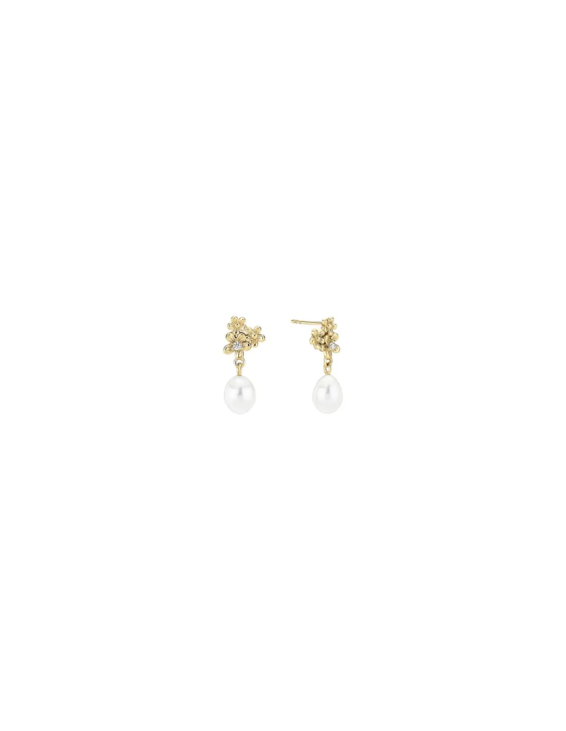 Disse ørestikker fra Lund Copenhagen kombinerer klassisk design med et moderne præg. Fremstillet i 8 karat (333) guld, er ørestikkerne udsmykket med en 6,5-7 mm ferskvandsperle og en funklende zirkonia-sten. Kombinationen af den naturlige perle og den glimtende sten giver smykket et stilfuldt og tidløst udtryk, der gør det ideelt til både hverdag og særlige anledninger.