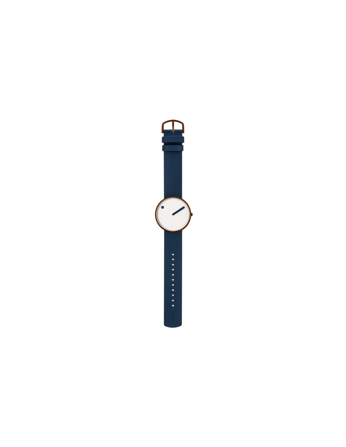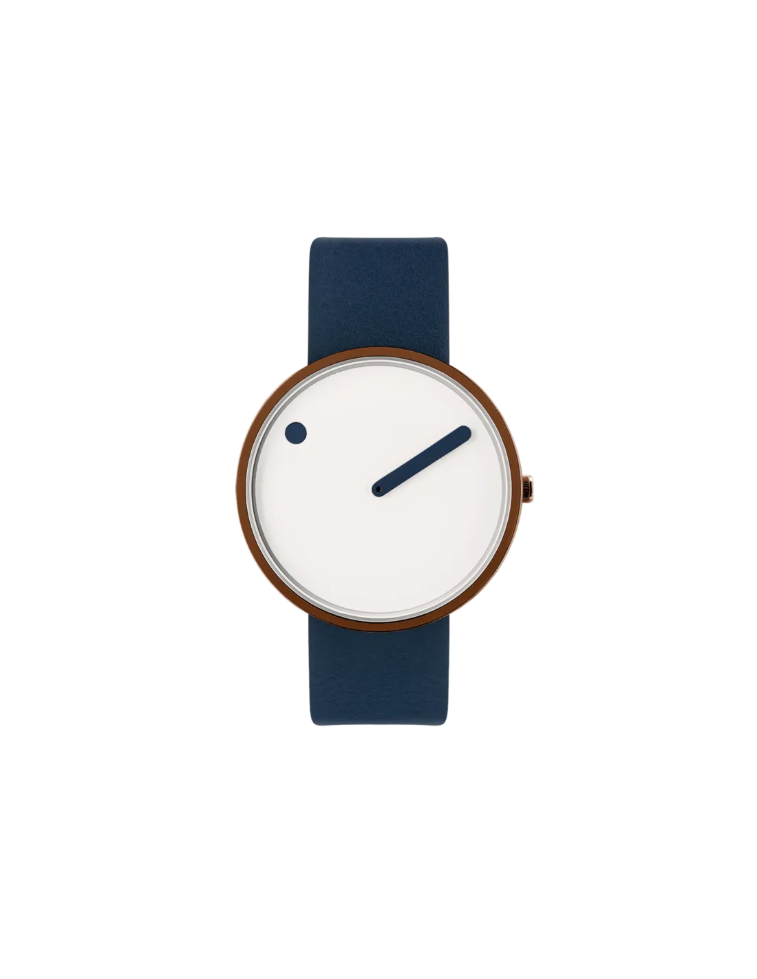 PICTO armbåndsur med roterende urskive og midnatsblå læderrem. Urskiven på dette ur er 40 mm.