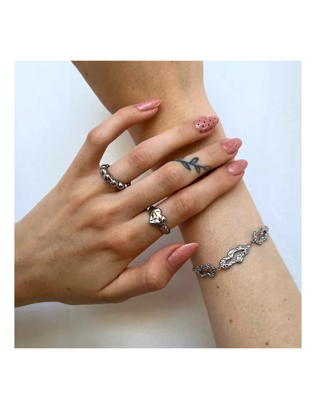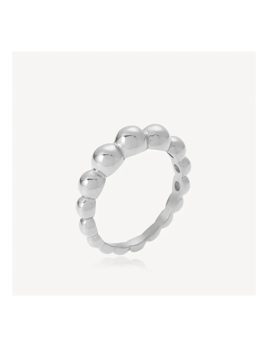 Denne Bubble ring fra Sistie er fremstillet i rustfrit stål og designet med et mønster af små, runde bobler, der giver ringen et moderne og legende udtryk. Det blankpolerede stål sikrer en holdbar overflade, som bevarer sit skinnende look gennem daglig brug.
