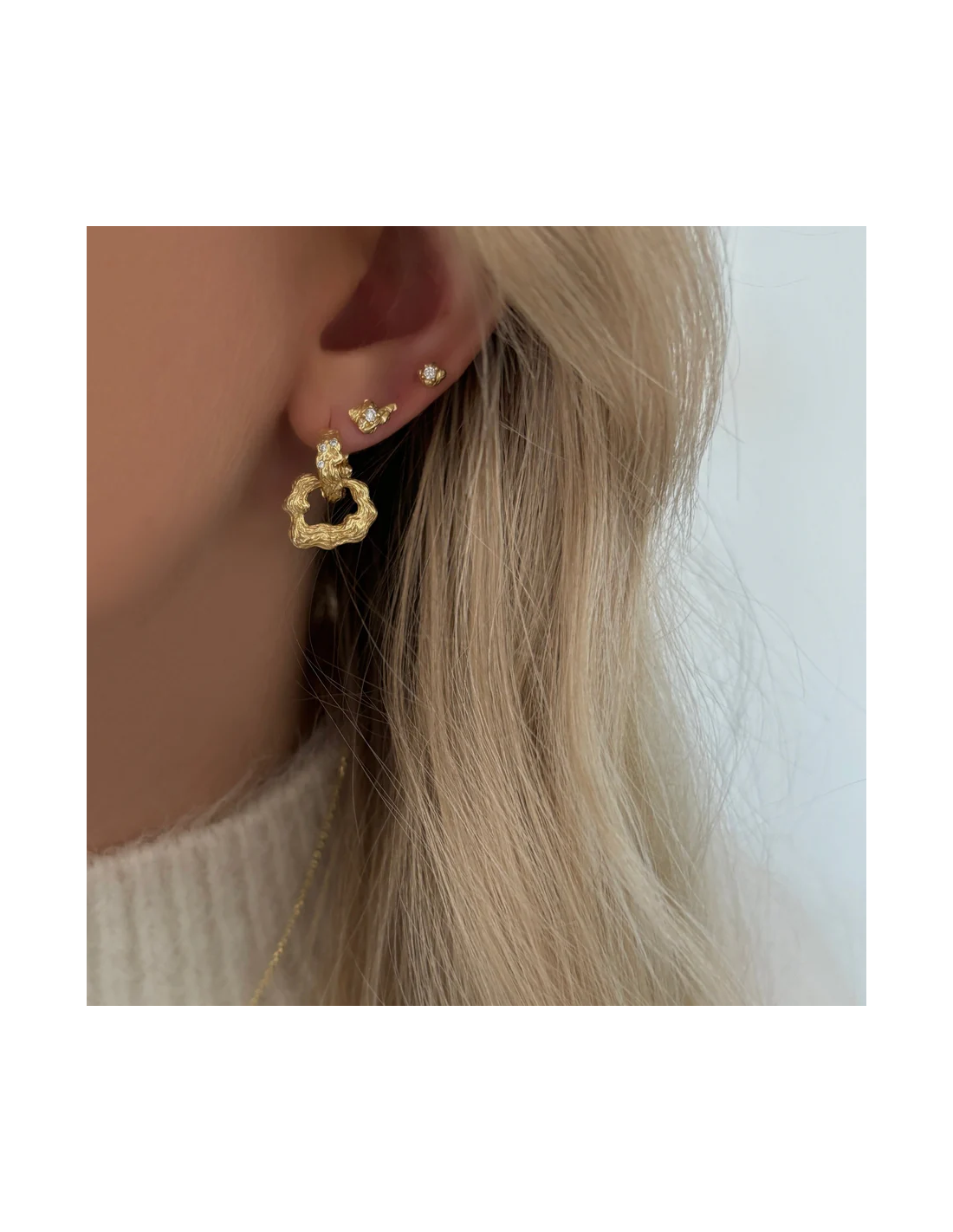 Nephele Earrings er smukke øreringe med en overflod af fine detaljer. Disse chunky creoler er prydet med talrige små kubiske zirkoner og et stort hoop-vedhæng, der tilføjer et unikt præg. Vedhænget kan tages af, så du får to i en ørering.De er en del af Elements Kollektionen, der hylder de fire elementer, og disse øreringe er en bemærkelsesværdig tilføjelse til enhver smykkesamling. Perfekte til at tilføre glans og elegance til ethvert outfit.