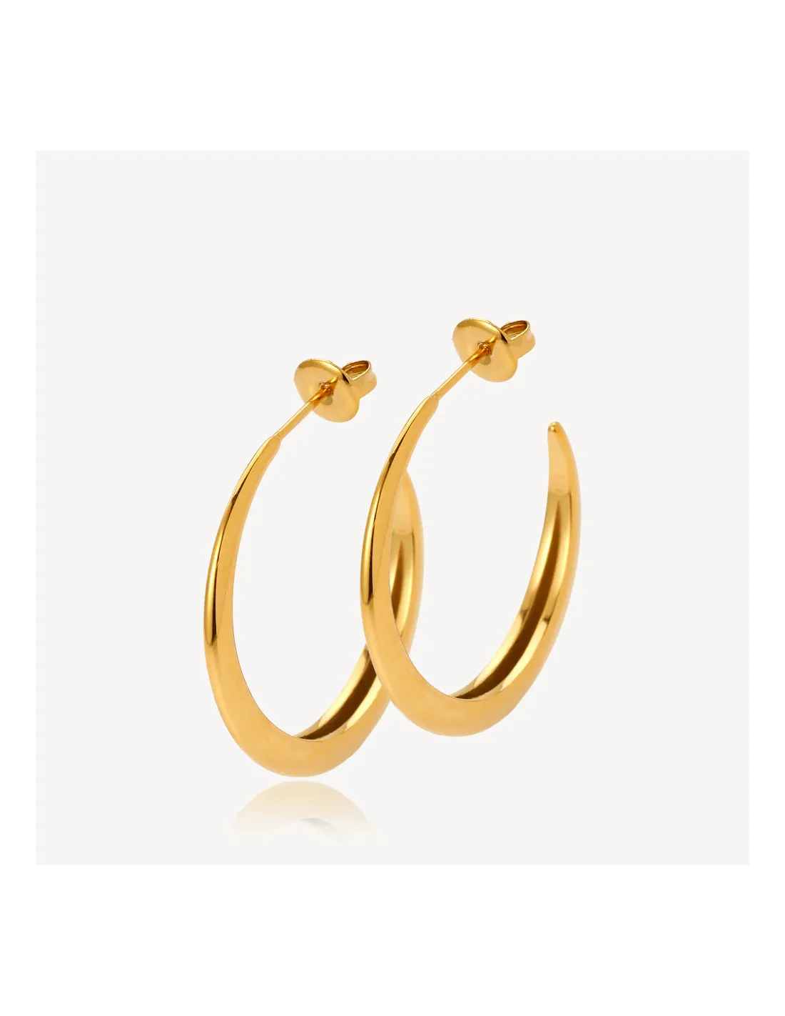 Lux - Creoler 18kt Forgyldt Stål Simple og cool Creoler, til at upgradere ethvert outfit. Passer til både hverdag og mere festlige lejligheder, samt nem at sammensætte med andre smykker. Mål: 30mm i diameter Materiale: 18 kt. forgyldt Stainless steel ♻️ 100% recycled Stainless Steel med holdbar PVD-behandling. Smykket er lavet i rustfrit stål, og belagt med den ekstra holdbare PVD-behandling. Smykket har derfor, i forhold til smykker lavet i andre materialer, en uovertruffen slidstyrke og ridsefasthed. Smykker i rustfrit stål kan både klare sved, vand, fugt og parfume, og er derfor ekstremt holdbare. Se mere under vedligeholdelse af rustfrit stål smykker.