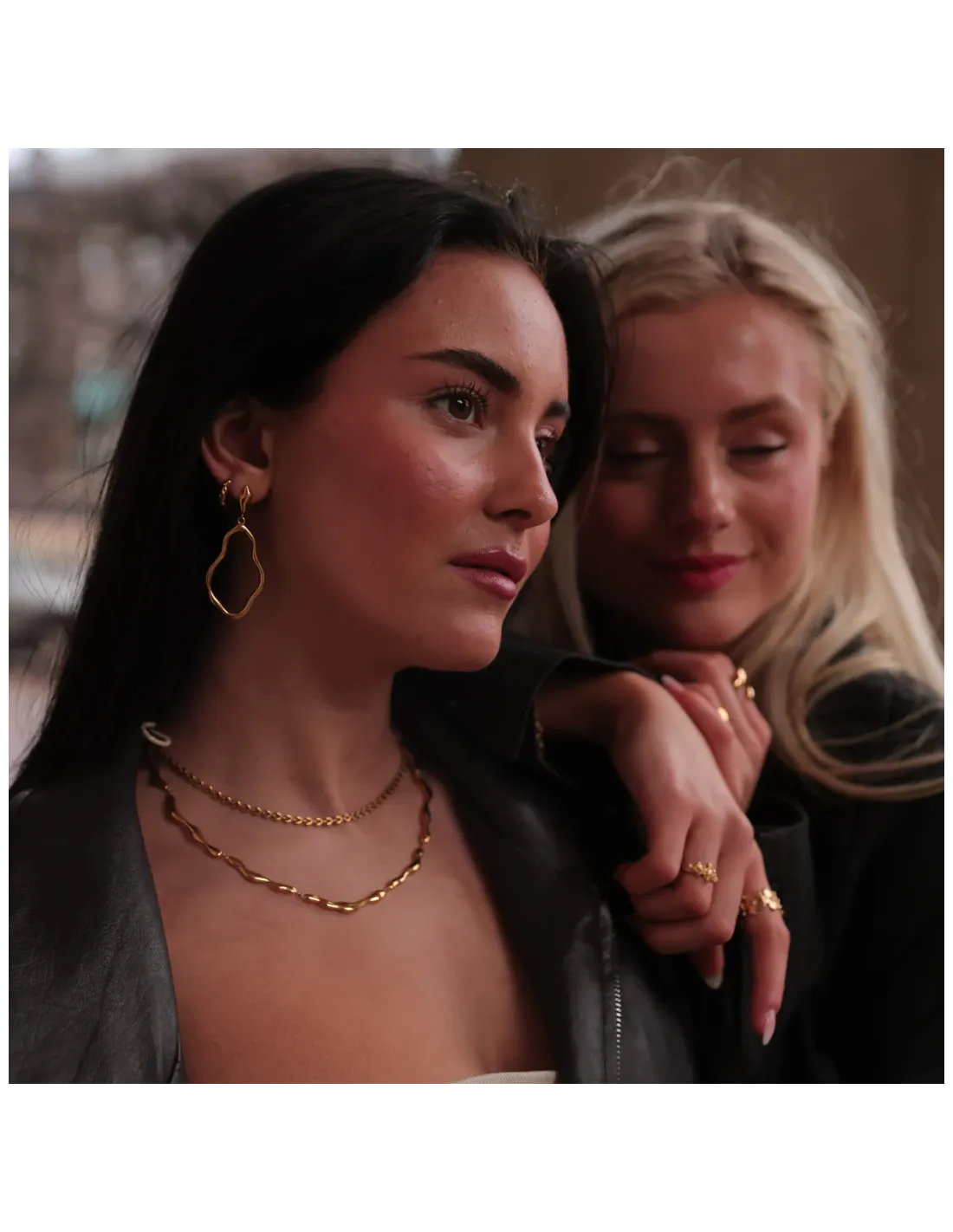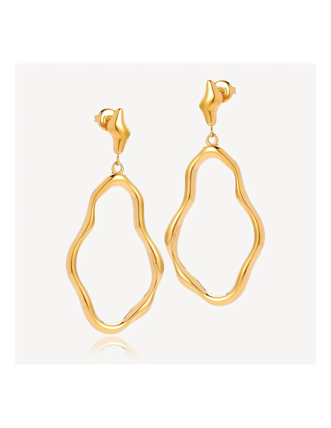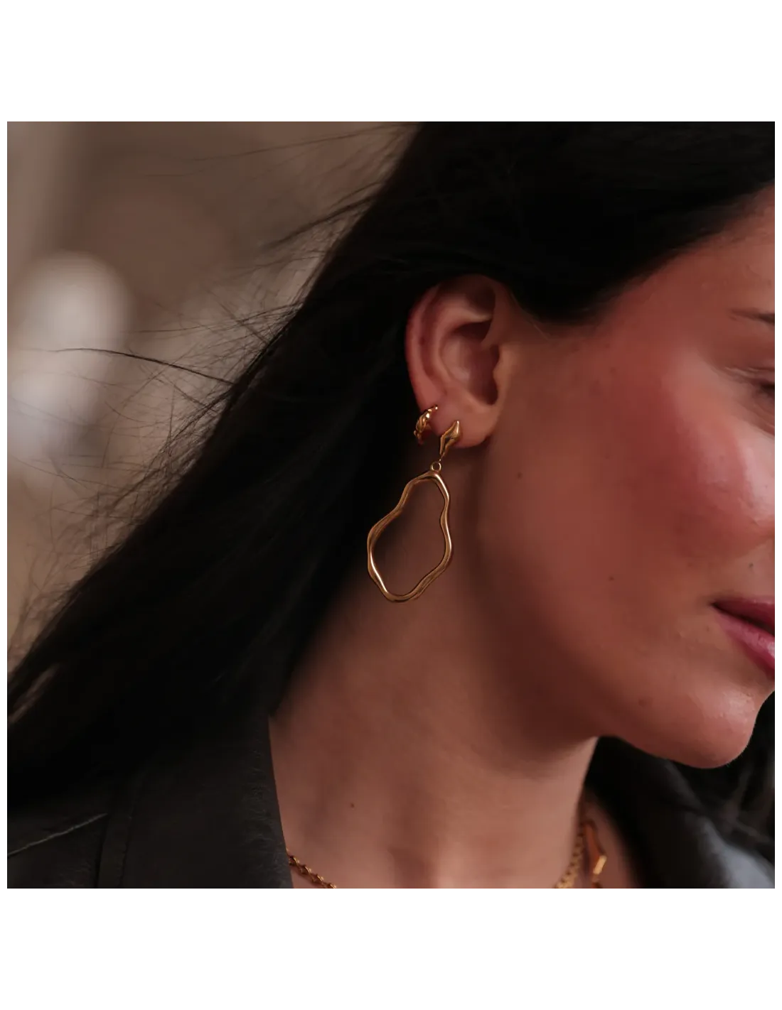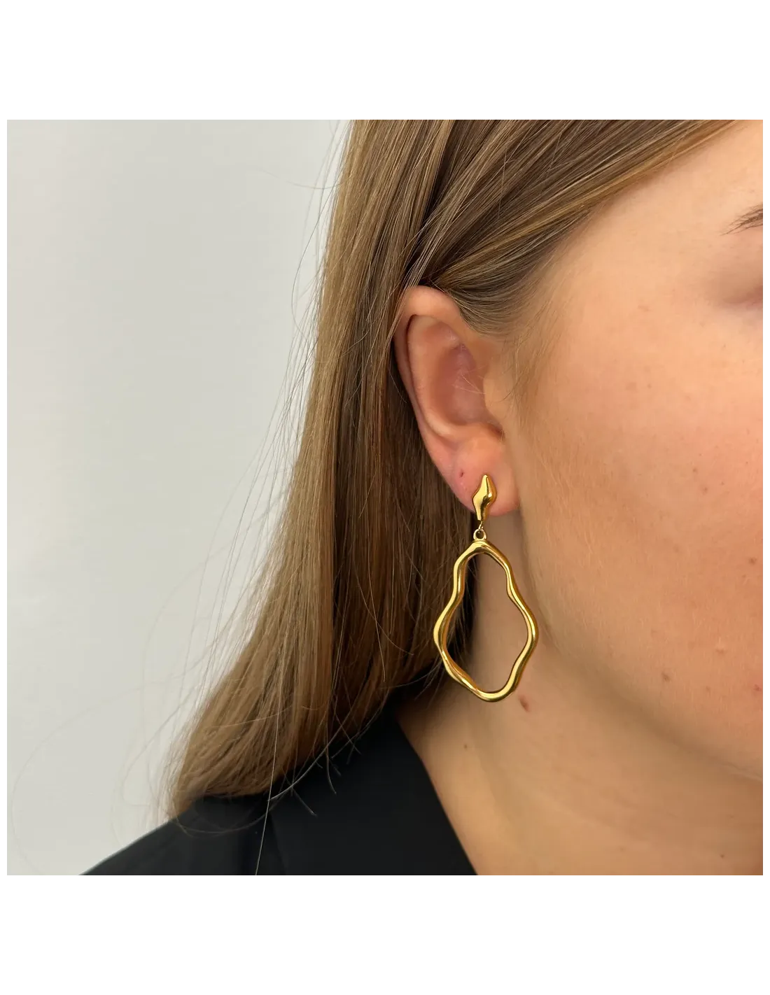 Wavy - Øreringe 18kt. Forgyldt Wavy øreringenes bølgende udtryk, tilføjer selvsikker elegance og et sofistikeret touch til dit look. Det perfekte smykke til at understøtte din udstråling og personlige stil. Mål: 57x26mm Materiale: 18 kt. forgyldt Stainless steel ♻️ 100% recycled Stainless Steel med holdbar PVD-behandling. Smykket er lavet i rustfrit stål, og belagt med den ekstra holdbare PVD-behandling. Smykket har derfor, i forhold til smykker lavet i andre materialer, en uovertruffen slidstyrke og ridsefasthed. Smykker i rustfrit stål kan både klare sved, vand, fugt og parfume, og er derfor ekstremt holdbare. Se mere under vedligeholdelse af rustfrit stål smykker.