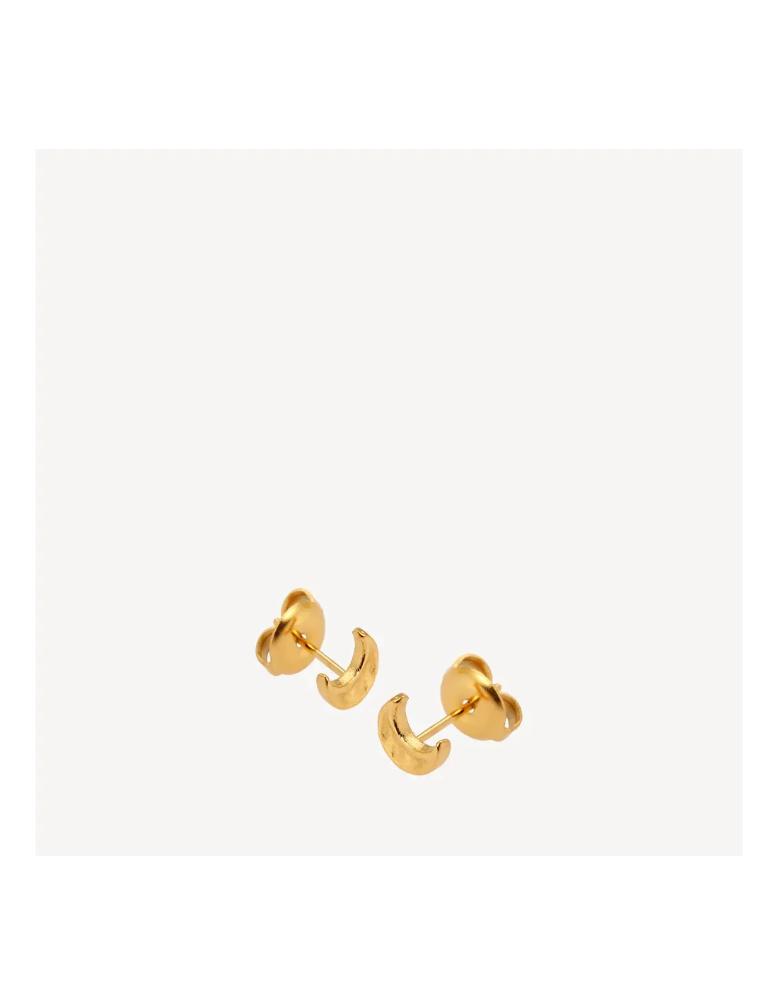 Sirena - Ørestikker Forgyldt De måneformede ørestikkere fra Sirena-kollektionen tilføjer en elegant detalje til din personlige stil og er perfekte til at kombinere med andre smykker. Mål: 5x6mm Materiale: 18kt. Guldbelagt Stainless steel ♻️ 100% recycled Stainless Steel med holdbar PVD-behandling. Smykket er lavet i rustfrit stål, og belagt med den ekstra holdbare PVD-behandling. Smykket har derfor, i forhold til smykker lavet i andre materialer, en uovertruffen slidstyrke og ridsefasthed. Smykker i rustfrit stål kan både klare sved, vand, fugt og parfume, og er derfor ekstremt holdbare. Se mere under vedligeholdelse af rustfrit stål smykker.