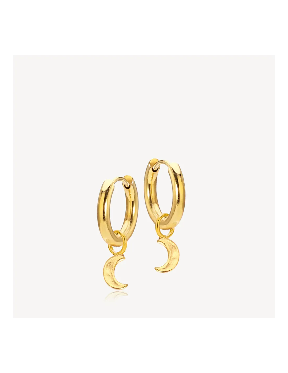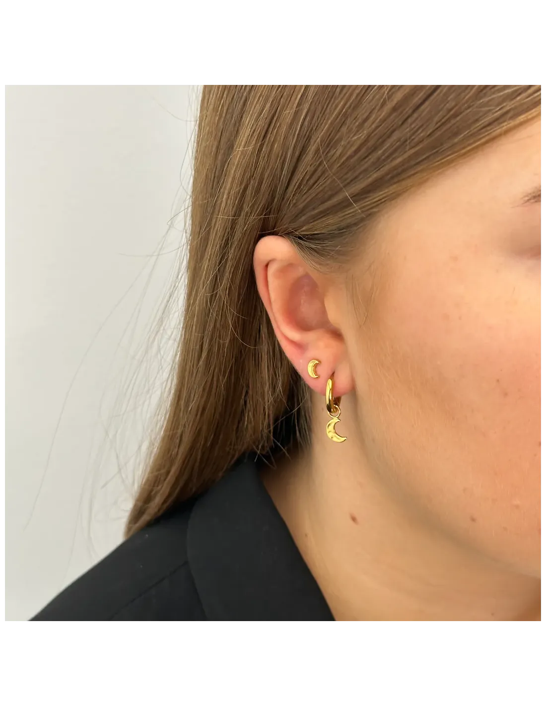 Sirena - Creoler med vedhæng 18kt. Forgyldt Oplev magien med disse yndige creoler, prydet med vores elegante måneformede smykkevedhæng. Med bløde, harmoniske kanter udstråler de tidløs skønhed og bliver et symbol på din unikke stil og lyset, der leder vej i mørket. Mål: 8 mm Materiale: 18kt. Guldbelagt Stainless steel ♻️ 100% recycled Stainless Steel med holdbar PVD-behandling. Smykket er lavet i rustfrit stål, og belagt med den ekstra holdbare PVD-behandling. Smykket har derfor, i forhold til smykker lavet i andre materialer, en uovertruffen slidstyrke og ridsefasthed. Smykker i rustfrit stål kan både klare sved, vand, fugt og parfume, og er derfor ekstremt holdbare. Se mere under vedligeholdelse af rustfrit stål smykker.
