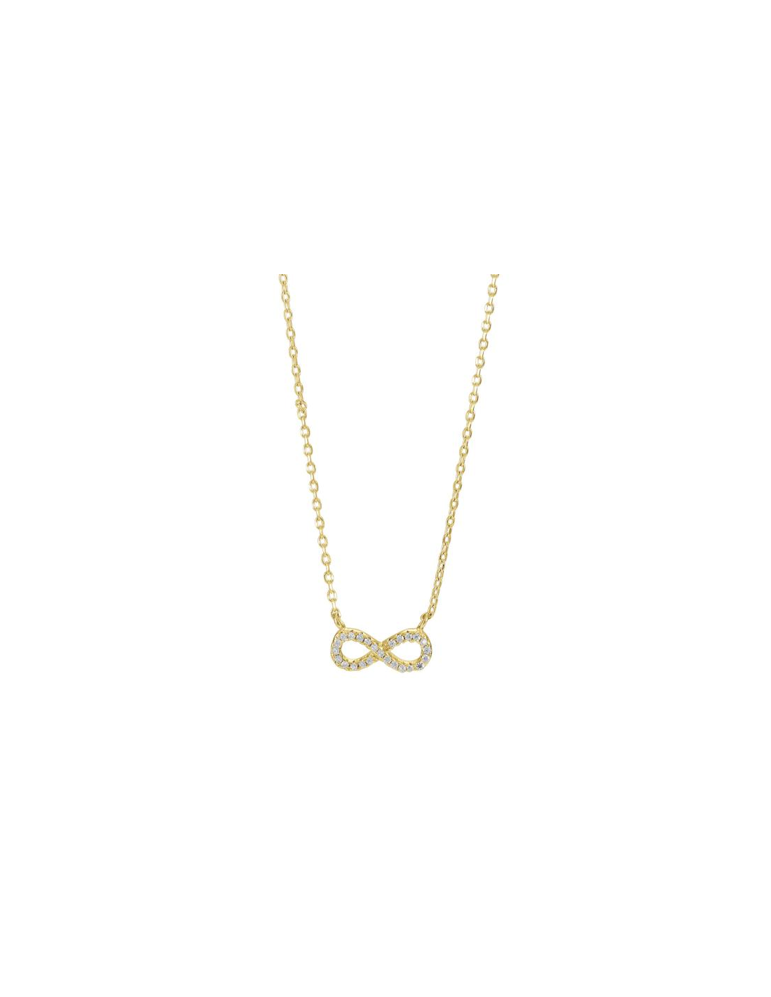 Dette fine infinity smykke, fra vores Agna serie, klæder uden tvivl enhver kvinde. Den forgyldte sølvkæde er afbalanceret og enkel, og går derfor rigtig fint med andre smykker. Uendelighedstegnet har påsatte zirkonia sten, som smukt komplimenterer smykket, og giver det et ekstra pift. Halskæden er en god symbolsk gaveide til en særlig person, og kan bruges som påmindelse om det unikke bånd i deler.