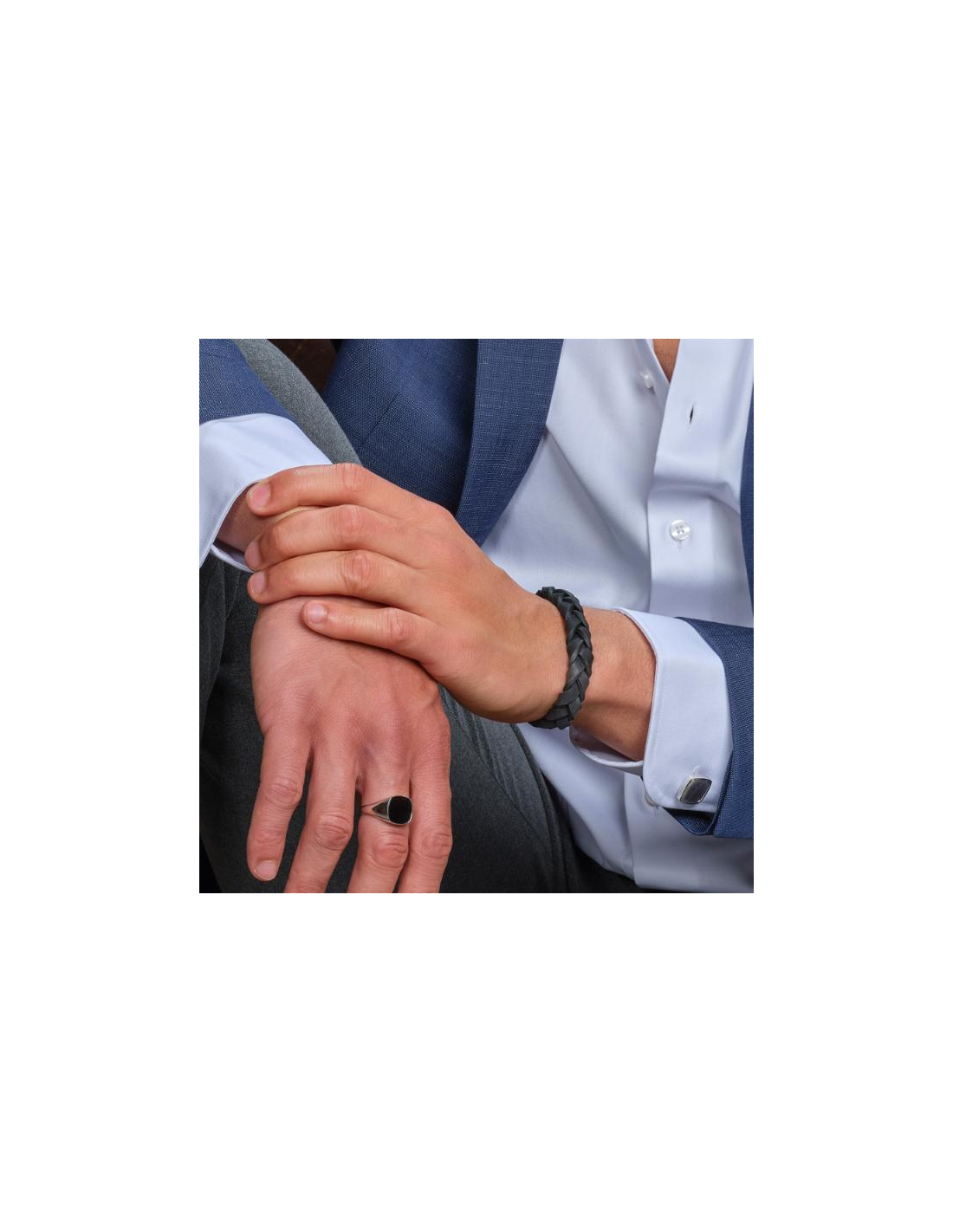 Dette rå armbånd i sort kalvelæder fungerer godt til både jakkesættet og det mere casual outfit. Låsen i stål udstråler maskulinitet og står som god kontrast til det flettede kalvelæder.