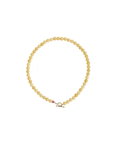 1Forårets og sommerens must-have er landet – en halskæde, der emmer af lethed og elegance. Cherie Bon Bon halskæden er sofistikeret og legende på samme tid. Ædelstenens farver changerer på en unik måde, når solens stråler rammer deres overflade. De smukke, gule jadeperle vækker associationer til morgenens første gyldne stråler. Et tidløst smykke, der bringer en følelse af friskhed og ro med sig, uanset hvordan det styles - kombiner halskæden med et par jeans og en t-shirt for et sofistikeret touch eller mix med andre halskæder fra STINE A Jewelry for et mere vovet look.