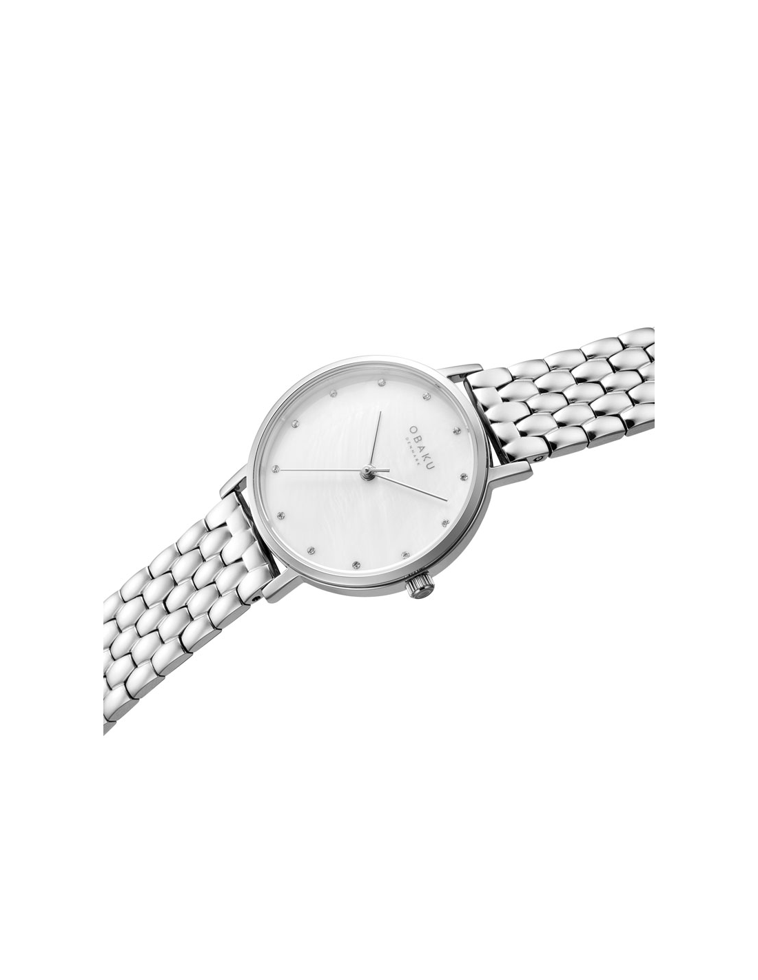 Dette stålurs enkle og rene udseende vil være en elegant tilføjelse til din garderobe, uanset om du vil pifte et par jeans op eller skal ud i nattelivet. Hvis du elsker kvalitet og flot design, er dette ur lige noget for dig. Kig godt på detaljerne på den fine hvid perlemor urskive og den matchende lænke i rustfrit stål lænke. Det er dansk design når det er bedst, hvor mantraet om 'less is more' er i fokus. Navnet på designeren,, som skabte det, er indgraveret i på bagsiden af urkassen for at minde dig om, at uret er en ægte designperle. Nyd detaljerne!