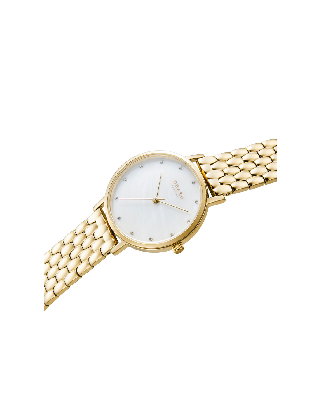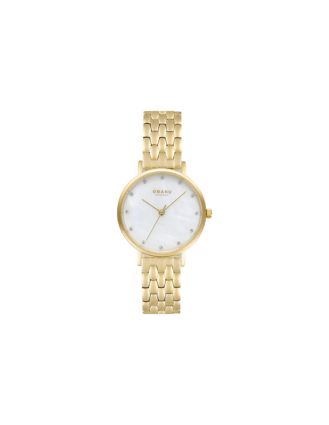 Dette enestående Obaku-urs gyldne farve udtrykker varme, kærlighed og medfølelse, uanset om du bruger det at pifte dine afslappede jeans op med eller har det på sammen med din yndlingskjole. Dette minimalistiske mesterværk har en forgyldt urkasse med en smuk hvid perlemor urskive og en guld rustfrit stålforbindelse lænke. Rene skandinaviske designprincipper er kernen i alle Obakus design, der er lavet til at se lige så moderne ud om ti år, som de gør i dag. Urkassen er indgraveret med navnet på urets danske designer, , som er kendt for sin høje grad af perfektion. Feel the moment!